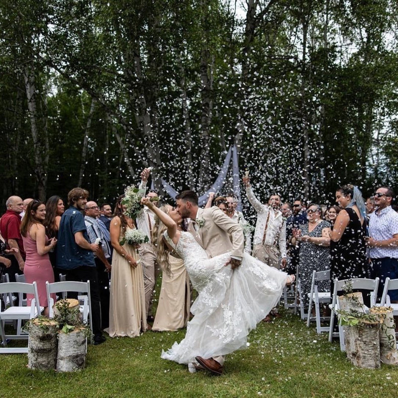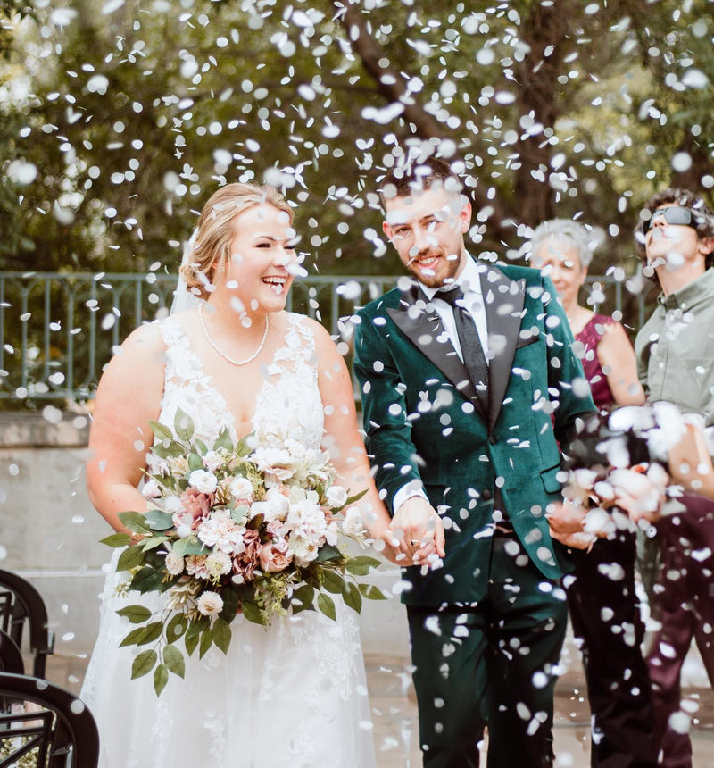 Eco-friendly, venue-friendly, and mess-free. Our biodegradable rice paper confetti is water-soluble and sustainably made — perfect for a beautiful celebration without the cleanup.