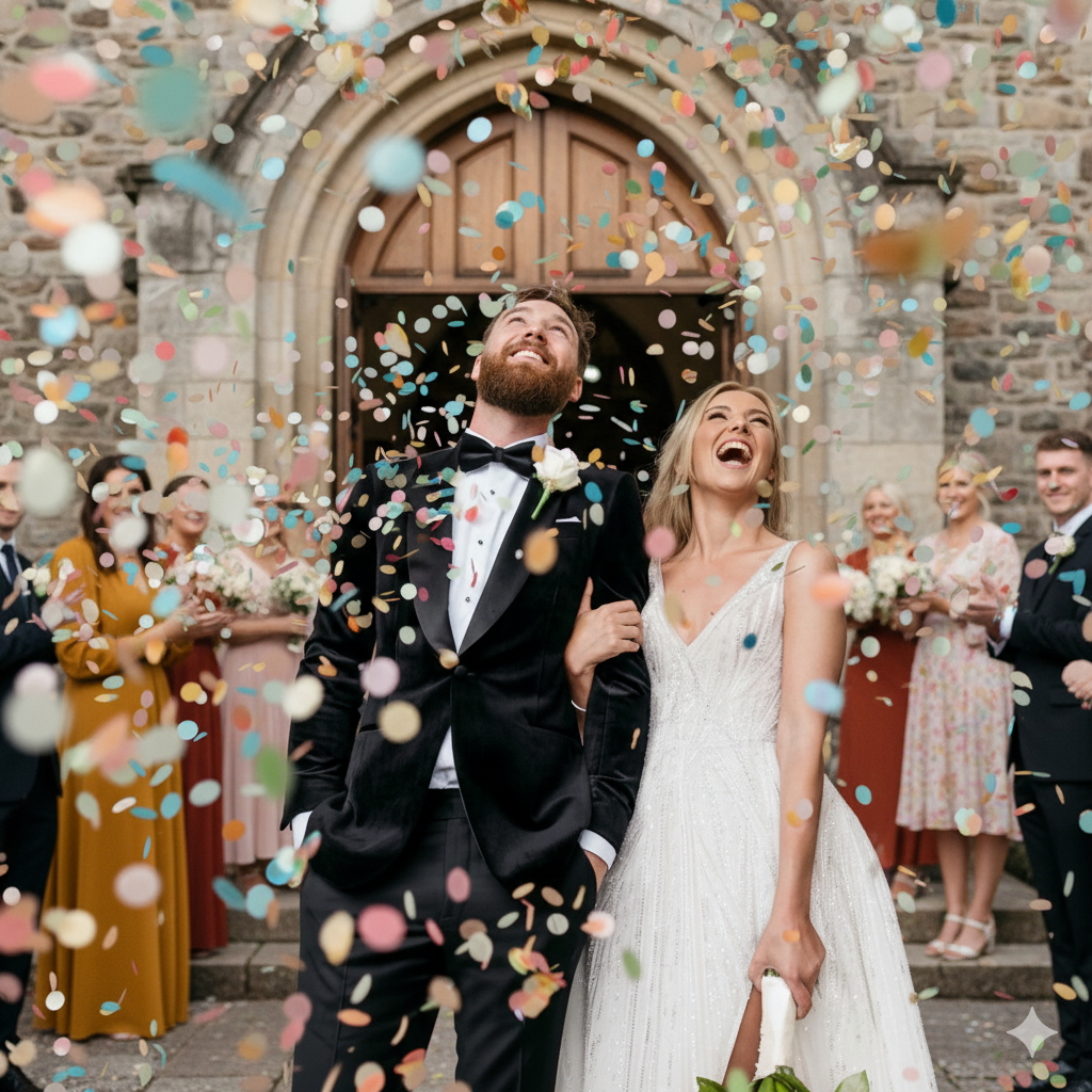 Yes. Our biodegradable confetti is designed for outdoor celebrations and dissolves naturally when exposed to rain or moisture. It leaves no trace behind. No plastic, no waste.